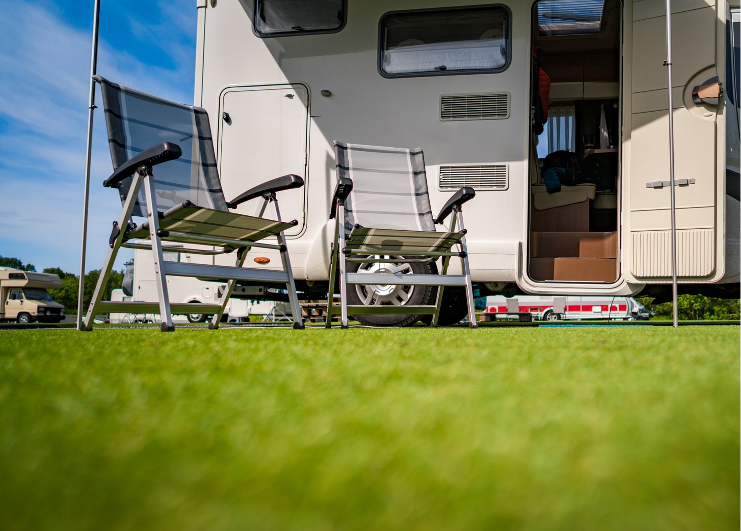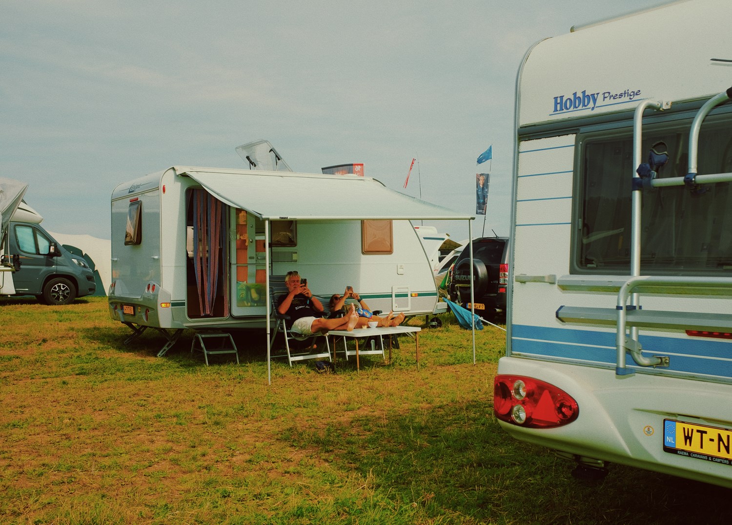 Les emplacements camping-car/caravanes de 40m² en zone Yellow et en zone Green sont prévus pour accueillir des camping-cars de taille standard (moins de 7,5 mètres de long) ou de petites caravanes de taille similaire.