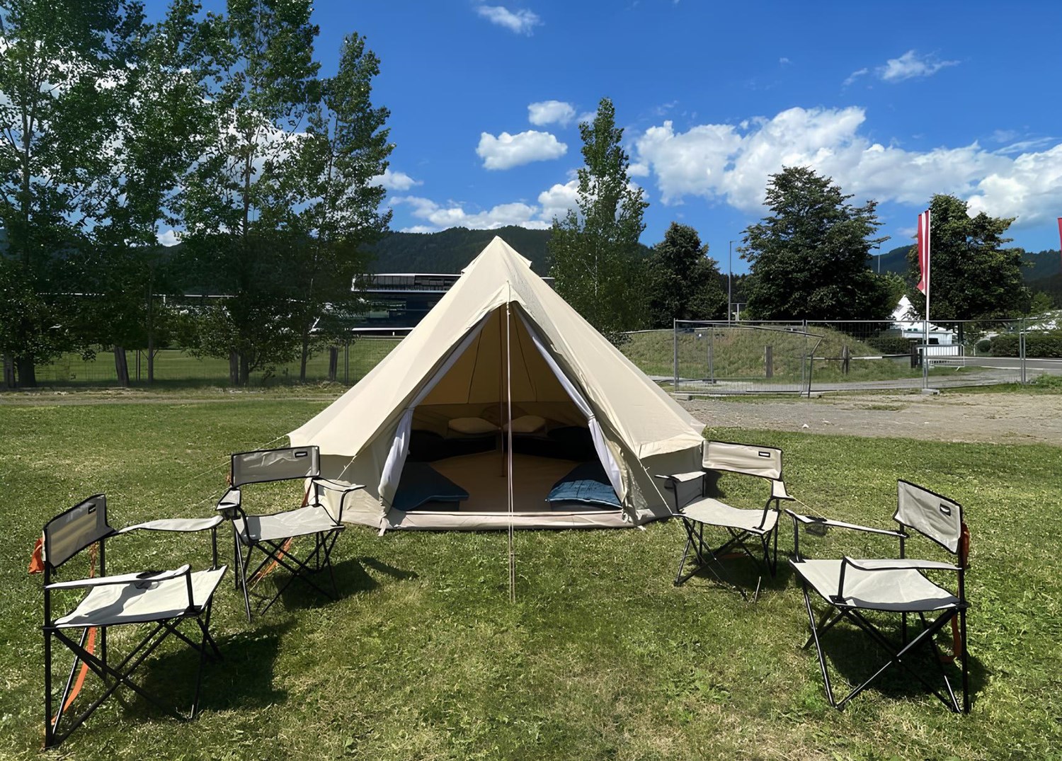 Au Glamping Vert, GrandPrix.camp possède ses propres tentes. Le camping est basique, mais entièrement équipé. Vous passez la nuit dans une tente prête, vous êtes à quelques pas du circuit et vous pouvez vous y rendre vous-même aussi tard que vous le souhaitez. Un avantage supplémentaire est que vous pouvez garer votre voiture à proximité du camping.
