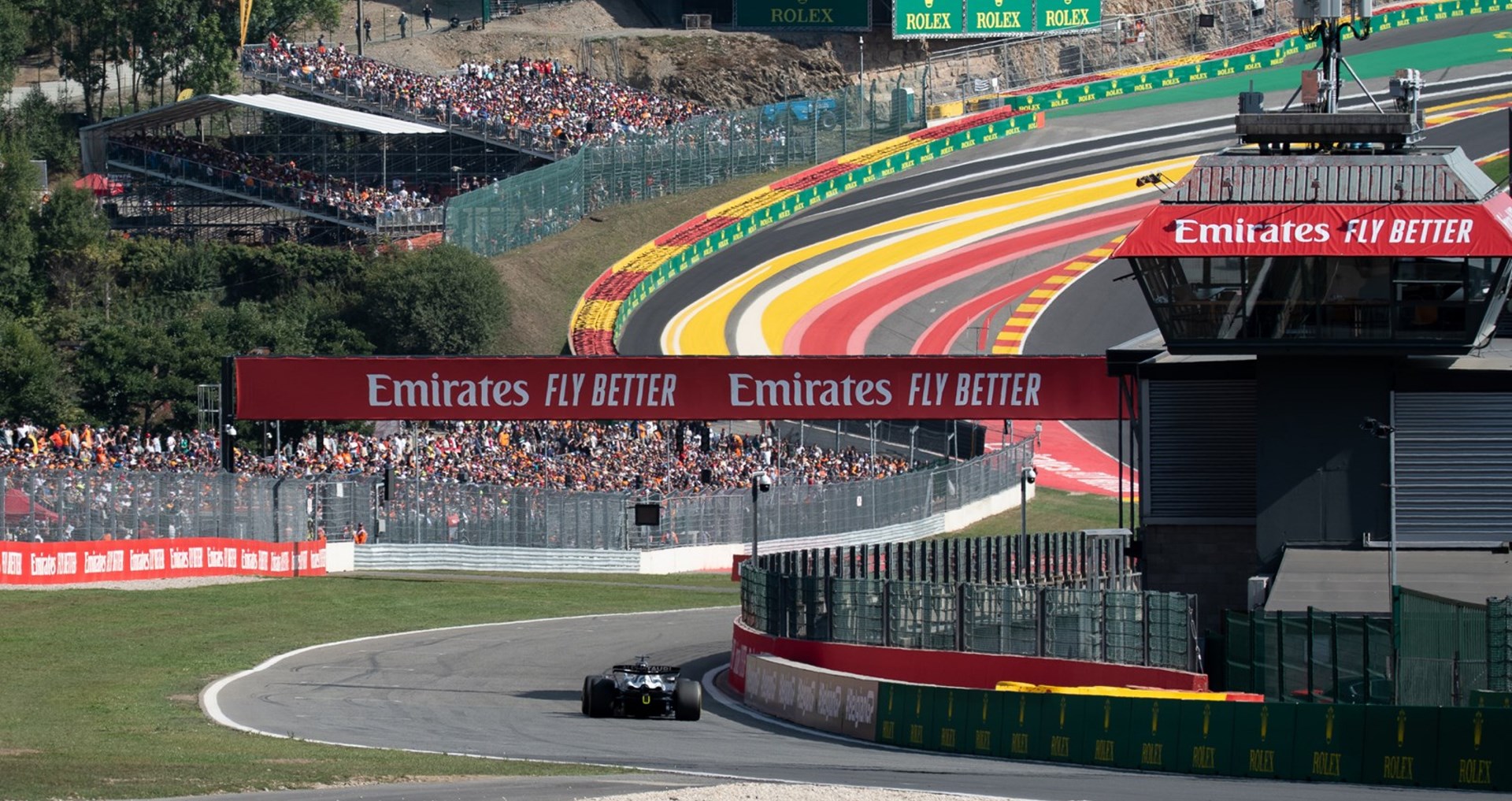 La tribune gold 1 vous offrira la meilleure vue sur la pitlane. Elle vous permettra aussi de profiter des nombreuses mise en grille tout au long du weekend dont le départ du Grand Prix! Cette tribune ofrre une excellente vue depuis la sortie de la chicane jusqu'au freinage de la Source. Spectacle garanti !